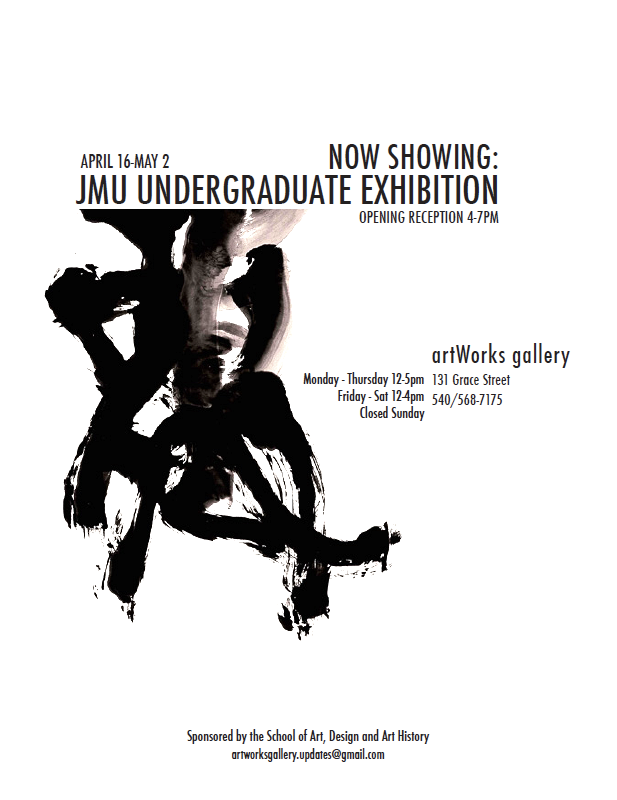 flyer designed to advertise jmu's undergraduate art show through the student run gallery, artWorks